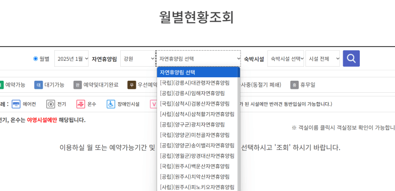 공립과 사립은 휴양림마다 운영 방식이 다릅니다. 대부분 매월 1일 또는 매주 수요일에 예약 오픈합니다.