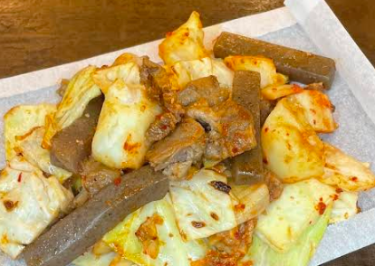 매콤한 양파와 곱창 느낌이 나는 지방 스뇨~한 두부김치 느끼함은 잡고 감칠맛은 살리는 완벽한 밸런스였어요. 추가 주문은 기본! 옆 테이블 현지인도 먹고 있던 그 메뉴입니다.